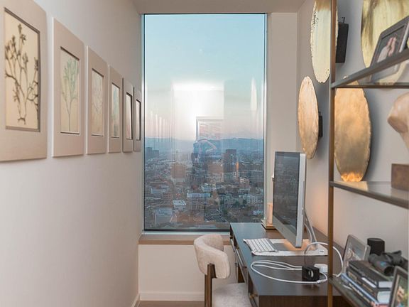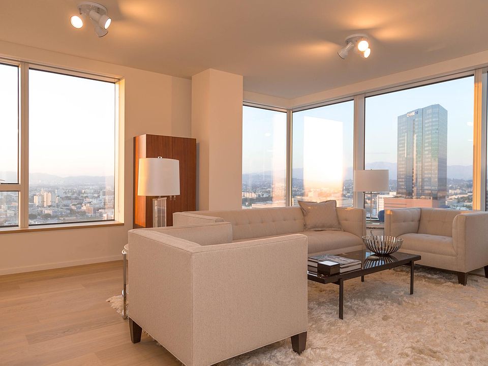 A Spacious Light-Filled Corner Unit, with Panoramic Hollywood Hills and DTLA Views. Conveniently Walkable for easy access to the Exciting Restaurants, Shopping, Art Galleries, and Entertainment, just steps away from your new home. Featuring an Open Floorplan with Ensuite Master, Guest Bedroom, Bonus Office Space, High Ceilings, and Bosch Appliances. Amenities Include: 24/7 Lobby Security Concierge Services, Upscale Community Room, Outdoor Oasis Pool/Spa with Cabanas, BBQ, Fireside Retreat, Billiards, Business Center, Fitness Center with Lockers, Showers, Steam Room, Yoga/Cycling Room, Dog Park, Screening Room. Includes Two Designated Parking, Water, Gas, Trash, Guest Parking, and Large Storage Unit. Come Live in Luxury! Tenant pays electricity, insurance, internet