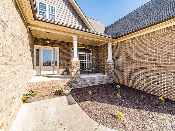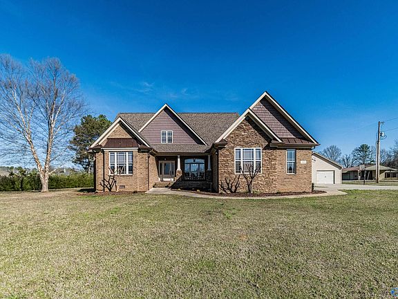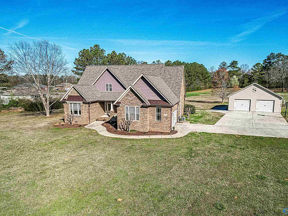 Country living. Custom built home on 4.23 acres. Large, vaulted ceiling welcomes you into the living area. Custom built cabinets and large island in the kitchen with eat in breakfast area. Isolated master bedroom with an abundance of natural lighting. Bathroom has separate tub and walk in tile shower. Large bonus room with bathroom upstairs. Enjoy your private backyard from the covered porch and patio area. Attached garage closed in, heated and cooled. Detached 30x30 garage with 3/4 bath. Less than 30 mins to downtown Huntsville, 20 mins to Guntersville, 30 mins to Redstone Arsenal.