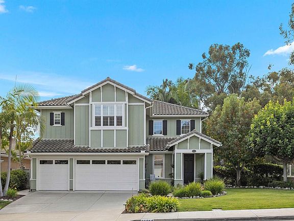 Something for everyone in this five bedroom home located in the sought after Aviara neighborhood of Azure Cove. Situated in a beautiful setting at the end of a cul-de-sac nestled next to a Nature Preserve and the Batiquitos Lagoon. This home is close to everything North County San Diego coastal living has to offer including stunning beaches, world class golf, nearby nature trails and award winning schools. The restaurants and shops of Carlsbad Village, Oceanside and Encinitas are all just minutes away. This home features partial lagoon views and spaces for everyone. Gather friends and family in the Living Room, Dining Room, Kitchen and Family Room downstairs or the open and airy Bonus Room upstairs. There are plantation shutters throughout the home, dual A/C units, and hot water on demand. There is a first floor bedroom as well as a full bath plus four bedrooms upstairs. The large primary Bedroom has a fireplace, a remodeled ensuite Bath as well as a walk-in closet A Home Office / Work-out room upstairs adds an extra element of versatility. Built in cabinets and epoxy flooring in the three car garage provides plenty of storage options and a central-vac system makes vacuuming a snap. The large private backyard is adjacent to protected open space and features a patio, built-in BBQ and covered outdoor areas providing a lovely setting for barbecues and sunset sips. Enjoy coastal living in a stunning natural setting at Azure Cove.