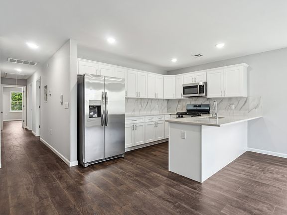 Be the very first to call this beautifully built top-floor apartment home! This brand-new 3-bedroom, 2-bath unit offers modern comfort, thoughtful design, and exceptional convenience in a quiet residential neighborhood. Step into a spacious, sun-filled open-concept living and dining area with gleaming hardwood floors throughout. The contemporary kitchen is a true highlight featuring quartz countertops, stainless steel appliances (including a gas stove, microwave, dishwasher, and refrigerator), and a breakfast bar for casual meals. Each bedroom is generously sized with hardwood floors and ample closet space, while the primary suite includes a walk-in closet and a private en-suite bathroom. Additional conveniences include in-unit laundry hookups, central air conditioning, and forced heat for year-round comfort. Located just 10 minutes from Newark Penn Station, commuting to NYC or Hoboken is quick and easy. You'll also enjoy nearby parks, delis, restaurants, shops, and multiple transportation options including bus and rail. This is city living with a relaxed neighborhood feel offering the best of both worlds.