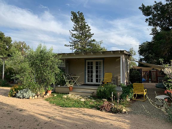 This Furnished charming comfortable old cottage is in horse country with a vineyard view out the kitchen window. In the river bottom- always a gentle breeze. This rural exclusive land has fenced yards and room for chickens and a gated horseshoe driveway. This is horse country, 0.1 miles to Ojai Valley Trail, 3 miles to Casitas water adventure, 6 miles to beautiful Ojai, 11 miles to the Pacific Ocean, 11 miles to Ventura, 30 miles to Santa Barbara. It is a charming comfortable small old cottage from the 1930's with beautiful views - of the vineyard SineQuaNon out the kitchen window and the sunset 'pink moment " on Topa Topa mountain visible from the yard. The front porch faces south down the Ventura river valley with constant gentle cooling breeze in the summer months. Off the master bedroom is a deck facing north with seating opening onto the enclosed garden with fruit trees, grape vines and flowers. Off the kitchen door, there is a large outdoor covered patio with outside dining and a large cowboy barbque. Orchards, herbs and native plant gardens on this property with plenty of places to sit and enjoy the views and the sounds of the multitude of wild birds and enjoyment of the night sky.. Neighborhood has large horse ranches, training arenas and many farm animals to view when driving by. 2 bedrooms in total with the master bedroom with a deck opening to the enclosed garden. Privacy, fenced and gated horseshoe driveway. Landlord pays water, trash and gardener- renter pays gas, electricity, cable/ internet. Would prefer long term rental. No smoking Fully furnished. large private fenced yards, beautiful gardens & mature trees. Garden views and mountain views.. Fruit trees & herbs. Off Street parking, gated horseshoe driveway.Gentle river valley breeze Owner pays for water & trash. Tenant pays gas, electricity, cable..