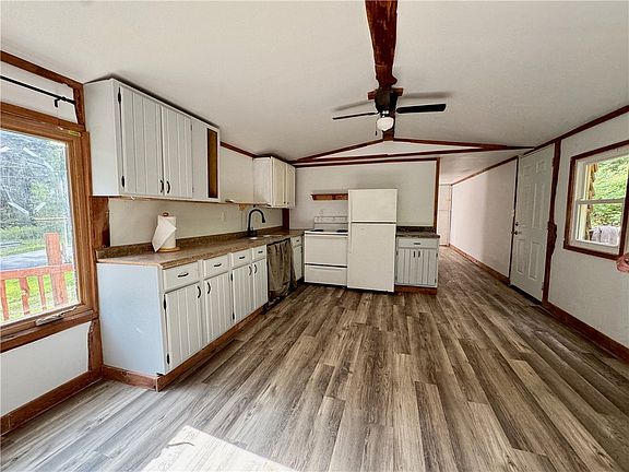 Remodeled 2 BR single wide home on 1.42 acres. Updated flooring. 200 Amp electric. Metal Roof on house 2-Years old, Metal roof on garage 1-year old. New Pressure tank, New HW Heater 2 years ago. Replacement windows. Metal exterior doors. 2-Car detached garage. Spectrum cable and internet available. House has back and front Handicap ramps and wide interior doors and hallway's. No houses real close for those who value privacy. Looking for a cash sale as it would be near impossible to get a mortgage. There are no HUD tags. Two separate tax map parcels. This is great for someone looking for a place to land or someone who wants it for a rental. Make an appointment today and make this yours! There is a large room with laundry hook up that you could put a bed in if extra room is needed.