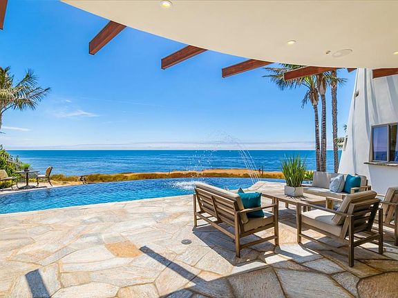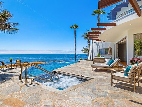 Welcome to Chateau Beau Soleil, an unparalleled oceanfront masterpiece nestled within one of San Diego's most sought after coastal communities. This estate is a testament to coastal luxury living at its finest, where breathtaking ocean views and unforgettable sunsets are your daily indulgence. Encompassing an impressive 6,337 square feet of pure luxury distributed across four levels, this residence stands as a testament to exceptional engineering and architectural brilliance. The magic of this home unfolds with its vanishing glass doors that effortlessly blur the line between indoor and outdoor living. This meticulously designed masterpiece showcases a gourmet chef-inspired kitchen equipped with top-of-the-line appliances, five bedrooms, an executive office, a home theater, a private gym, an exquisite infinity pool and a spa. A floating teak spiral staircase, encircling a glass elevator, escorts you upstairs to the owner’s suite, a marvel unto itself, with a dressing chamber, a vanity room, and a stone-encased soaking tub with a mesmerizing ocean backdrop. Bask in luxury as you witness sunsets from your bed or savor a glass of fine wine on the master terrace, immersing yourself in endless panoramic coastal views. The crowning glory of the home, referred to as the "turret" by the architect, grants a 360-degree panoramic view that is nothing short of breathtaking. Below the ground's surface lies an expansive subterranean garage spanning 3,000 square feet, designed to provide a secure sanctuary for up to six of your cherished vehicles. As an added indulgence, the property features a luxurious carport that graciously contributes an additional three parking spaces. This home presents an extraordinary opportunity that is sure to captivate the admiration of anyone who lays eyes upon it.