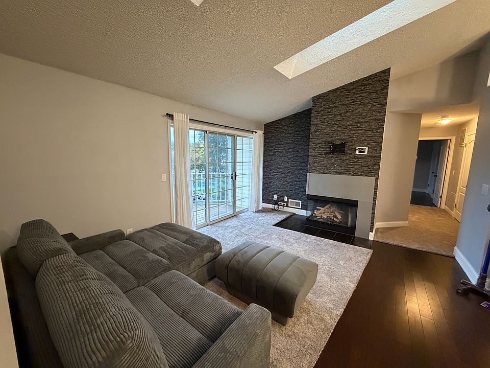 Well maintained and updated 2BR, 2 full baths 3rd floor unit in Society Hill complex. New carpet in living room and hallway. Partially furnished unit with high ceilings with 2 sky lights a 2-piece couch and table and a wood burning fireplace Sliding glass doors to a spacious balcony overlooking the pool and tennis courts. New stainless appliances in the kitchen, furnished with table and chairs. Laundry room off kitchen with newer washer, dryer and a new hot water heater. Walk in closet in primary bedroom. 2nd bedroom has a pull-out couch. Storage unit outside next to the condo front door. Unit also has a Nest thermostat for heating and A/C. No pets and no smoking in unit. Close to parks public transportation and shopping.