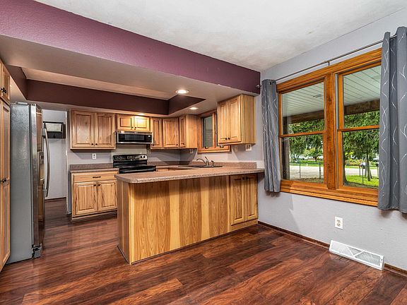 This all-brick walkout ranch offers the perfect blend of comfort, functionality, and space inside and out. Situated on just under an acre with a fully fenced yard, this home features two garages—two stalls up and two down—with a convenient driveway leading to the lower level. Inside, you’ll find 3 bedrooms plus a non-conforming 4th bedroom in the lower level and 3 remodeled full bathrooms. The main level boasts an inviting living room with a fireplace and an updated kitchen with newer cabinets, countertops, and all appliances included. The lower level is equally impressive, featuring a spacious family room with a full kitchen, and a separate entrance—ideal for an in-law suite, guest space, or potential rental. Enjoy relaxing on the large covered front porch or entertaining in the expansive yard. This home truly has it all!