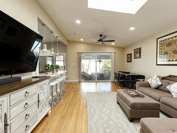 Centrally located and beautifully updated, this 4-bedroom, 2-bath home is move-in ready with all the right improvements. The remodeled kitchen features modern finishes and flows seamlessly into the living areas, while both bathrooms have been tastefully renovated. Hardwood floors run throughout, complemented by recessed smart lighting. Major upgrades include a newer roof (2022), water heater, and A/C for peace of mind. The backyard offers a covered patio and mature fruit trees—perfect for relaxing, entertaining, or enjoying homegrown treats. With paid solar, you’ll love the energy savings. A wonderful blend of comfort, convenience, and style!
