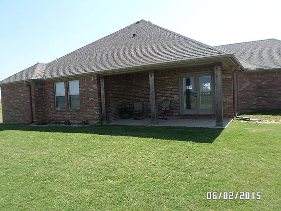 Custom built 4 bed/2 bath brick home on acres about 1.5 miles from Marietta. Open concept dining/kitchen and living room area. Large walk in pantry. Kitchen has granite counter tops and stainless appliances. All bedrooms nice size. Master has large walk in closet and tile shower. Metal shop with overhead door and 10 ft overhang. Storm cellar. Covered patio to enjoy the Oklahoma sunsets.