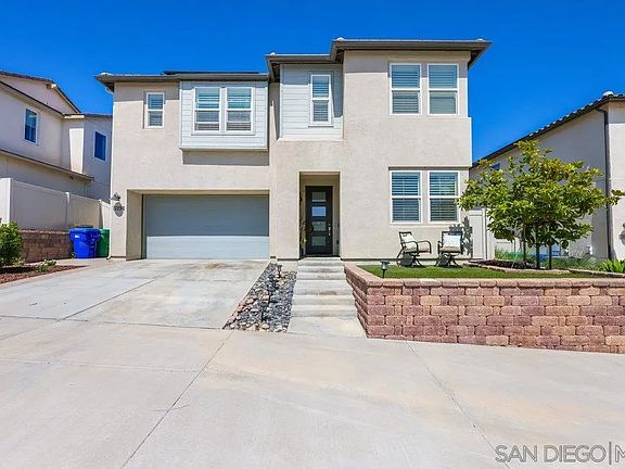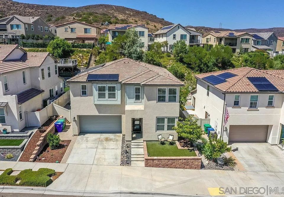 Experience elevated living in this luxurious home in the sought-after Weston community of Santee, where modern design meets breathtaking views. Inside, the open-concept layout is filled with natural light and high-end finishes throughout. The main living areas feature luxury vinyl plank flooring, plantation shutters, and designer touches at every turn. The chef’s kitchen boasts a striking marble backsplash, abundant storage, and seamless flow into the dining and family rooms, each opening to the outdoors through expansive bi-part sliding glass doors. A private downstairs suite with its own bath offers ideal space for guests or a home office. Upstairs, a versatile oversized loft provides the perfect second living area. The primary suite is a true retreat, showcasing a spa-inspired bath with a soaking tub, oversized walk-in shower, dual vanities, and a generous walk-in closet. The secondary bedrooms share a Jack & Jill bathroom. The laundry room is conveniently located on the second floor as well. Outside, live the California dream. Socialize with your neighbors, enjoy the views or watch the stars from your elevated sitting area in the front yard. The backyard features a California Room, gazebo with fire pit, barbecue, and enhanced privacy with the scenery of the natural hill. Life is further enhanced with paid for solar and the 13-stage reverse osmosis, alkaline water system. This remarkable home pairs style, comfort, and convenience —schedule your private tour today. Enjoy nearby Santee Lakes. Close to schools, restaurants, shopping, entertainment, and recreation.
