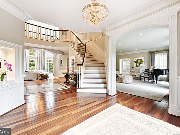 Experience resort-style living in the heart of McLean. Drive up to this gracious home through its circular paved driveway, surrounded by mature trees. This home boasts 1.73 acres of manicured gardens and privacy, with just under 11,000 square feet of living space. Step into the grand Foyer of a Renaissance Monet, where exquisite light fixtures illuminate the true luxury of today. The elegant Living Room and Dining Room with a Butler’s Pantry lead you to the renovated Kitchen with top of the line appliances and a breakfast room that opens to the expansive Deck. A 2-story sunken Family Room features floor to ceiling windows, gas fireplace and a top-of-the-line wine and beverage center, perfect for entertaining. The office/library has built-in cabinets and opens to the beautiful Sun Room. The Upper Level boasts the Owner’s Suite with coffered ceiling, Office, Sitting Room with gas fireplace that provides access to a private balcony and owner’s Bath with separate vanities. Continuing on the Upper Level, you'll find three ensuite bedrooms, one of which features an office. The walkout Lower Level is an entertainer's dream with a Billiards Room, Wet Bar, Media Room, Bedroom with huge walk-in Closet and a full Bath. Step out into the gardens to find privately manicured stone vistas that overlook the grounds, leading to your pool oasis complete with a cabana, changing rooms, and a pergola with stone fireplace. All this luxury is nestled behind stone privacy walls, creating a private oasis of its own. A rare find in McLean, this home is nestled at the end of a cul-de-sac, sitting high on a hill.