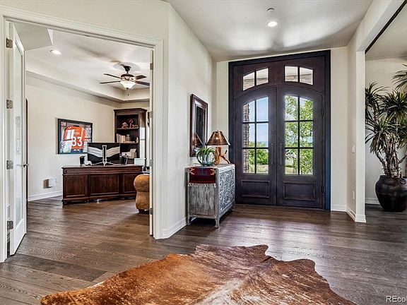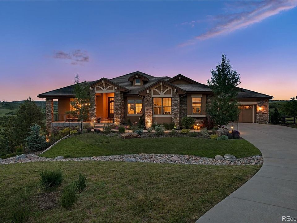 This meticulously designed ranch-style home is situated on 2.88 acres in the highly desirable gated community of Cherokee Ridge Estates offering breathtaking panoramic views of the Front Range and luxurious living spaces both inside and out.