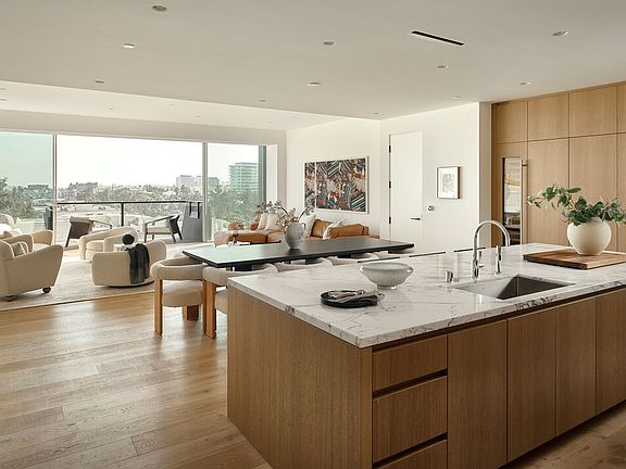 8899 Beverly is world-renown architects Olson Kundig's "Love Letter to Los Angeles". The AD 100 architect's Leed Gold-certified masterpiece culminates in the finest new development to hit the Los Angeles skyline. This two bed, two bath Tower Residence features an oversized kitchen island with open-concept, expansive, living and dining room. The sliding walls of the extraordinary, Swiss-made, Vitrocsa glass system bring the outdoors into each residence. The finest, hand-selected, materials include travertine throughout the residences and common areas, Sub-Zero, Miele and Gaggenau appliances, Calacatta Gold marble, bronze residence entry surrounds and custom door handles of bronze and hand-stitched leather. Ceiling heights soar up to 11 feet, including the custom recessed and cove lighting. Building amenities include 24-hour lobby staff, concierge, fitness center outfitted by Techno Gym and private studio space. 8899 has an extreme focus on privacy, safety and exclusivity for its residents. Experience over a quarter-acre of outdoor space, lushly landscaped by Coen + Partners with resort-style pool, oversized spa, garden seating with fireplaces and custom outdoor kitchen and dining. Enjoy short walks to premier dining and shopping, including The Ivy, Craig's, Bristol Farms, Chanel and more. Experience the exclusivity and luxury of Olson Kundig in this ultra-prime, walkable, Los Angeles location. 8899 Beverly is a feat never to be accomplished again. Please note that not all photographs represent the listed residence.