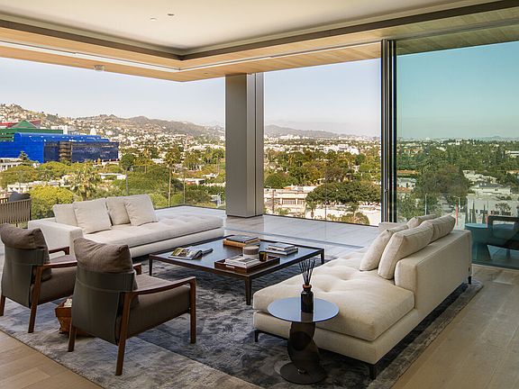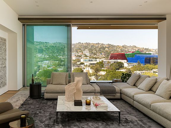 One-of-a-kind, custom four bedroom combo residence. Immediate closing: building is fully operational and staffed and move-in ready! 8899 Beverly is world-renowned architects Olson Kundig's "Love Letter to Los Angeles". Residence 6BE is the only remaining four bedroom floor plan, other than the Penthouses, and has a massive primary suite with sitting room/office facing north with the most brush form views of the hills. The primary suite also opens entirely to the outdoors allowing you to enjoy the views from every room and from your terraces. The AD 100 architect's Leed Gold-certified masterpiece culminates in the finest new development to hit the Los Angeles skyline. The Tower Residences feature expansive views across the Los Angeles horizon and encompass LA's most iconic landmarks. The sliding walls of the extraordinary, Swiss-made, Vitrocsa glass system bring the outdoors into each residence. The finest, hand-selected, materials include travertine throughout the residences and common areas, Sub-Zero, Miele and Gaggenau appliances, Calacatta Gold marble, bronze residence entry surrounds and custom door handles of bronze and hand-stitched leather. Ceiling heights soar up to 11 feet, including the custom recessed and cove lighting. Building amenities include 24-hour lobby staff, concierge, fitness center outfitted by Techno Gym and private studio space. 8899 has an extreme focus on privacy and exclusivity for its residents. Experience over a quarter-acre of outdoor space, lushly landscaped alongside a resort-style pool, oversized spa, garden seating with fireplaces and custom outdoor kitchen and dining. Enjoy short walks to premier dining and shopping, including The Ivy, Craig's, Bristol Farms, Chanel and more. Experience the exclusivity and luxury of Olson Kundig in this ultra-prime, walkable, Los Angeles location. 8899 Beverly is a feat never to be accomplished again. Please note that not all photographs represent the listed residence.