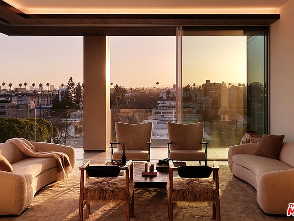 Welcome home to Residence 7C at 8899 Beverly. This southwest corner 2 bedroom/2.5 bath offers an abundance of natural light and evening sunset views, and boasts soaring ceiling heights up to 11'. Dramatic Vitrosca sliding glass walls open wide, seamlessly connecting the interior living spaces with a private terrace. The primary suite is a sanctuary of pure relaxation, featuring an additional private balcony, dual walk-in closets, and a deep soaking tub placed against floor-to-ceiling windows. From this quiet and private 7th floor location, views to the south and the west are uninterrupted to the horizon.The guest suite features an en-suite full bath, while the laundry room offers additional storage. From the handcrafted leather entry door handle to the gourmet chef's kitchen featuring premium Sub-Zero, Miele, and Gagganeau appliances, nothing has been overlooked. 8899 Beverly Blvd is Olson Kundig's "Love Letter to Los Angeles" This architectural gem offers exceptional amenities and full service living with 24-hour concierge, 24-hour valet parking, and fitness center with private studio. Outside, a lushly landscaped quarter-acre oasis awaits with a resort-style pool, spa, fireplaces, and custom outdoor kitchen. Walk to premier dining and shopping destinations, including the new Stella Restaurant located in the building. Experience the epitome of luxury urban living in West Hollywood. Contact us for a private viewing today.