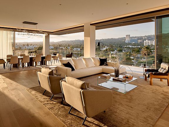 Welcome to Jr Penthouse 9A. This exquisite 3 bedroom/4.5 bath residence at 8899 Beverly perfectly showcases the remarkable craftsmanship that defines this iconic West Hollywood property. The high-floor corner location enjoys coveted, uninterrupted north-facing views of the Hollywood Hills and includes a private Auto Stable in our show-room style garage. At nearly 4000sf, 8A is our largest 3-bedroom floor plan, featuring soaring 11-foot ceilings which create a sense of volume and light. Floor-to-ceiling operable glazing by Vitrocsa opens the entire expanse of the dining and entertaining areas, with Italian travertine exterior terraces seamlessly transitioning to the interior. Adjacent to the central entertaining area, the spacious media room is ideal for movie nights and moments of relaxation.The primary suite is a haven of privacy, featuring floor-to-ceiling operable glass that connects to a secondary private terrace. Dual bathrooms and walk-in closets, along with a soaking tub against a glass backdrop, make this suite a true retreat. Both north-facing guest rooms also enjoy stunning views of the Hollywood Hills, complete with ensuite baths and closets. Residence 8A offers an abundance of closet and storage space, including a generously sized laundry/utility room. The custom-designed chef's kitchen is a masterpiece, equipped with top-of-the-line Meile, Gaggenau, and Sub-Zero appliances, complemented by custom cabinetry and marble countertops. Crafted by Olson Kundig Architects, 8899 Beverly stands as an iconic collection of 40 Tower Residences, each representing a unique expression of luxury living. The attentive staff ensures a five-star living experience. Amenities include 24-hour concierge and valet services, a fitness center, and a quarter-acre oasis with a resort-style pool, spa, fireplaces, and a custom outdoor kitchen. Within a short walk, you'll discover premier dining and shopping destinations. An exciting addition to the building is Stella's Restaurant, a collaboration between renowned restaurateur Janet Zuccarini and Executive Chef Rob Gentile, enriching the exceptional lifestyle offered at 8899 Beverly. A private auto stable with parking for 2 cars, in addition to 2 valet spaces, allows the Jr Penthouse to store up to 4 vehicles in the garage. HOA dues include earthquake insurance, water, gas, and a host of services and amenities- we invite you to explore the full offering of this West Hollywood oasis.