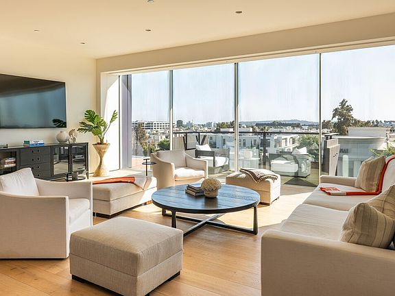FULLY FURNISHED LEASE IN LA'S PREMIERE CONDOMINIUM. DESIGNED BY WORLD RENOWNED ARCHITECT OLSON KUNDIG. This stunning south-facing sixth-floor residence offers breathtaking panoramic views to the south, east, and west, flooding the space with natural light throughout the day and showcasing glittering city lights by night. The thoughtfully designed open floor plan features premium white oak floors and floor-to-ceiling windows, complemented by recessed art lighting and the finest quality appointments throughout. Every detail reflects exceptional craftsmanship, from the Sub-Zero, Miele, and Gaggenau appliances to the Calacatta Gold marble, custom bronze door handles, and hand-stitched leather accents. The luxurious primary bedroom includes a spacious walk-in closet, double vanity, spa shower, and soaking tub, while the guest bedroom boasts beautiful south-facing views and its own walk-in closet. 8899 Beverly represents Olson Kundig's "Love Letter to Los Angeles" a truly iconic creation by the AD 100 architect and a LEED Gold-certified masterpiece that stands as the finest new development to grace the Los Angeles skyline. This exceptional property offers unparalleled amenities and full-service living with 24-hour concierge service, 24-hour valet parking, and a state-of-the-art Techno Gym fitness center featuring a private studio. Outside, discover a lushly landscaped quarter-acre oasis with a resort-style pool, spa, fireplaces, and custom outdoor kitchen. The prime West Hollywood location puts you moments away from premier dining and shopping destinations, grocery stores, and everything the neighborhood has to offer, including the new Stella Restaurant conveniently located on the ground level. Experience the epitome of luxury living in West Hollywood.