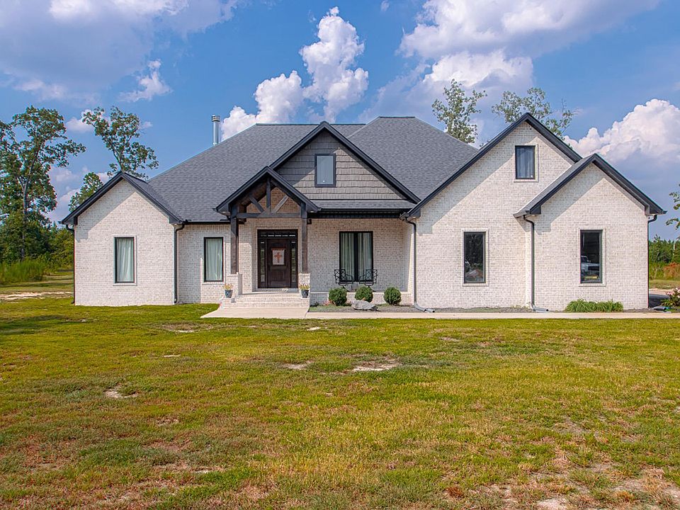 Situated on 17 acres of secluded acreage, this custom-built brick home offers 2,800 square feet of country living, designed with the utmost attention to detail. Enjoy an outdoor fireplace and area pre-plumbed for your outdoor kitchen setup.Inside, the home boasts a gourmet kitchen with granite countertops, gas cooktop, double oven, knotty alder cabinets, & oversized walk-in pantry. The open-concept living areas are adorned with rich wood accents along with a tongue and groove ceiling. The master suite is a sanctuary, offering a walk in closet off the master bath or walk through laundry area, a center island wardrobe, a soaking tub, and a custom tile shower. Downstairs along with the 3 bedrooms, there’s a dedicated office space, perfect for remote work. Don’t forget about the spacious upstairs bonus room, perfect for a playroom or teenage hangout. This home is built for comfort and efficiency with a variable speed smart HVAC system, metal ducts with spray foam insulation as well as spray foam insulation in the walls & attic. Additional amenities:tankless gas water heater, gas heat, commercial-grade wiring & underground electricity to the property & Anderson 100 series windows.