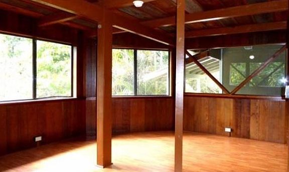 This unique, custom 3BR/2BA Cedar home is built on 1.24 acres of park-like setting. Home has an open floor plan with cathedral ceilings. The large, upstairs master bedroom is multi-faceted construction with lots of windows for natural lighting and closets. The roofed lanai is a 2 car carport below. Water is sourced via the two catchment tanks.<br><br>Studio apartment connected to the home and with a separate entrance and lanai.<br><br>Special features include:<br>* fenced in side yard built as a secure dog yard and accessed from inside the home<br>* storage building for tools and small workshop <br>* Rubbermaid storage building for riding mower and gardening tools<br><br>*Some fruit trees include: lychee, avocado, lemon, bananas,<br>tangerine, pineapple and soursop, orange, guava and coffee.<br>*other trees include: Ohia, Schefflera and plumeria. The largest tree is a majestic Rainbow Eucalyptus.<br>The property is partially fenced with lovely rockwalls and gate posts at the entrance. <br>This is a very peaceful and private property located at the end of Lani Kona Rd.