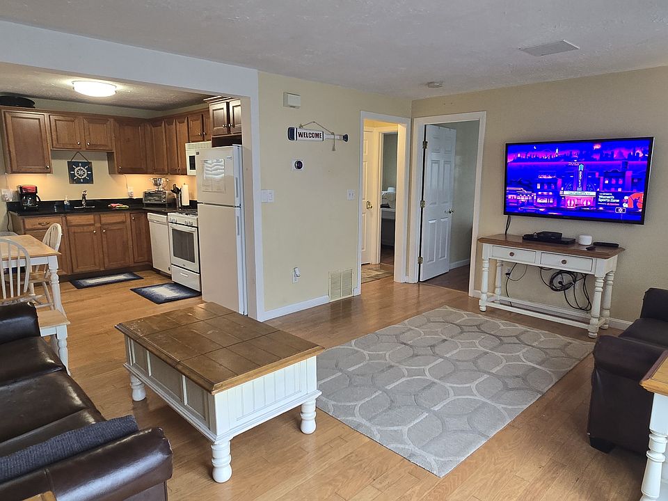 WINTER RENTAL NOV - MAY 31ST. $1950/MO (INCLUDES UTILITIES ) 2 Bedroom, 1 Bath End Unit Fully Furnished. Central Heat/Air. 2nd floor Garden style condo in an 8 unit Association. Large living room open to a spacious eat in kitchen fully appliance with gas stove, refrigerator, microwave, dishwasher, coffee maker and toaster. Flat Screen TV's in each bedroom and Livingroom. On-site coin operated laundry, off-street parking for 1 vehicle. 1 block to Hampton Beach Boardwalk. No Pets, No Smoking, Application fee/Credit/background, rental agreement + Security Deposit.