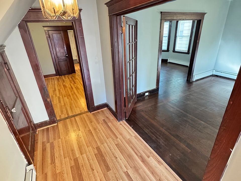 Super spacious 1st floor unit with 2 bedrooms and 1 bathroom. $1600/month. Kitchen is equipped with stainless steel appliances: Fridge and gas range. Hardwood floors throughout and large windows to allow lots of natural light! Formal dining room and living room feature bay windows and ceiling fans. Bathroom is currently being renovated and converted to a large stand up/walk-in shower. Tenant pays all utilities: gas & electric. Washer/dryer hook ups in shared basement. Only minutes from multiple bus lines! Pets allowed with owner approval and non-refundable pet deposit upon move in and monthly pet rent.