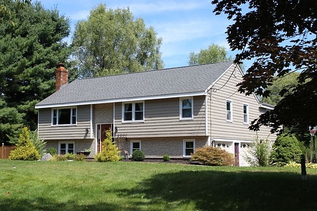 Stop right here, the search is over! All of those items on your wish list that you didn''t think you could find are right here at a great price and ready for you to enjoy! 3 bedrooms plus an extra room on the main level for an office/den. Central Air! GORGEOUS main bath was gutted and completely renovated, you''ll feel like you''re at the spa with the double wide tiled shower and separate soaking tub, double sinks too! Fireplace in the living room with cathedral ceiling. Updated kitchen with granite counters, tile floor and stainless steel appliances. Master bedroom is tucked away in the back overlooking the private back yard and offers cathedral ceiling and picture window. The lower level is a great space for the entire family to enjoy with the cozy wood stove to help offset heating. The yard is a private oasis with the fully fenced, level backyard. Plenty of front yard space also. Let''s not forget the awesome outside storage plus 2 car garage! Heating system water tank were new in 2009. Roof less than 8 years old!