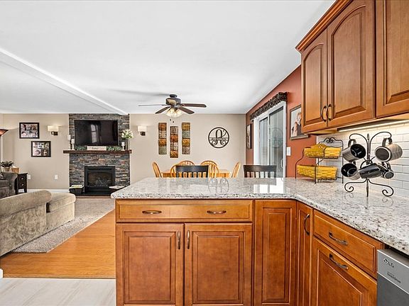 - Features: Closet, Flooring - Vinyl, Dining Area, Countertops - Stone/Granite/Solid, Cabinets - Upgraded, Open Floorplan, Remodeled, Stainless Steel Appliances, Peninsula, Lighting - Pendant