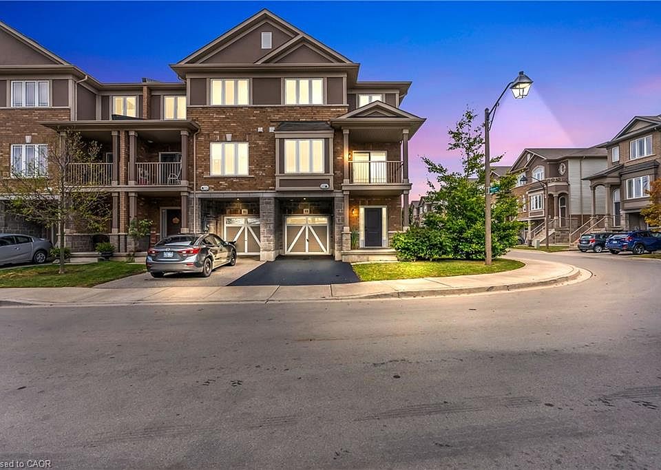 Welcome to this stunning newer end-unit townhouse in Stoney Creek, offering approx. 1,445 sq ft of refined living and showing beautifully throughout. Step up from the foyer into the light-filled second floor featuring 9-ft ceilings, hardwood floors, a modern kitchen with stainless steel appliances, and an open-concept family and dining space that leads to your own balcony. Step upstairs to the third level where you'll find the primary bedroom with generous closet space, a spacious modern bathroom, and two additional bright bedrooms. Steps to grocery stores, Walmart, and other big box retailers for all your everyday needs.