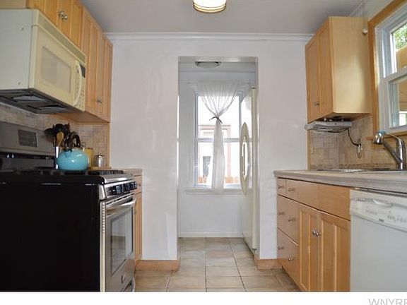 Charming updated 3 bedroom in excellent condition! Updates with maple cabinets, ceramic tile floors, counters and back splash, dishwasher & microwave, 1-1/2 bath with subway tile in full bath, windows, electric service and copper plumbing. Spacious living room and dining room adjoin sliding glass doors leading to deck with awning overlooking 146' deep fenced park like backyard!