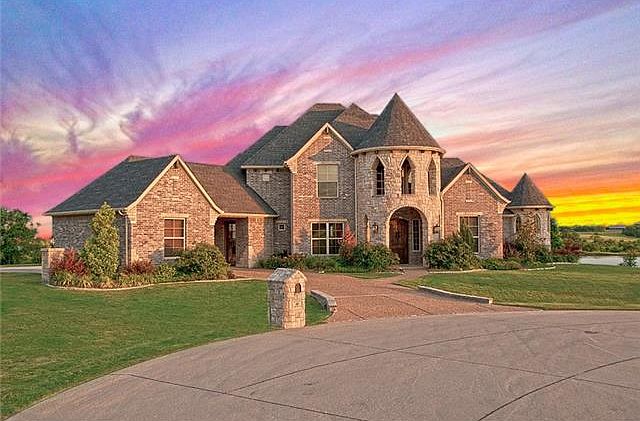 Elegant Old World Chateau Country Estate with Beautiful Rolling Hills on desirable Lake Front lot in the prestigious guarded Seis Lagos community with summit views of Lake Lavon. Natural Stone and Herringbone patterned Concrete Brick Fa ade with large Stacked Stone accents on exterior elevation with Stone Donjon Turret accented with Cathedral Windows and Dark Roofed Turret. Location Location Lacation... Lake Front Property... Hurry