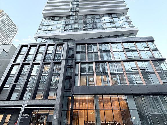 Welcome To The Saint Condos! Bright and modern 1-bedroom suite in one of Torontos most sought-after new buildings. This thoughtfully designed unit with 9 Foot Ceilings features an open-concept layout, floor-to-ceiling windows, and sleek finishes throughout. The contemporary kitchen boasts integrated appliances, quartz countertops, and ample storage. Enjoy a spacious bedroom with large closet, a spa-inspired 3-piece bath, and a private balcony with stunning city views.Building Amenities include State-of-the-art wellness facilities, fitness centre, yoga studio, co-working spaces, sauna, and rooftop terrace with panoramic views.Prime Location with Steps to St. Lawrence Market, the Financial District, TMU, transit, shops, and vibrant downtown dining & nightlife.Perfect for young professionals or anyone seeking stylish city living in the heart of Toronto.