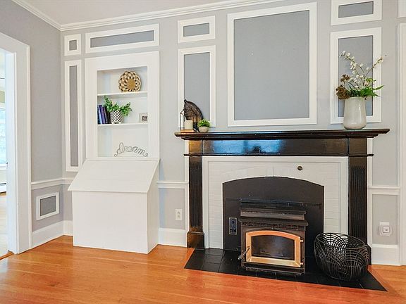 This spacious cape style home combines original charm with an updated kitchen, fresh paint & a separate basement suite! BRAND NEW 4-BEDROOM SEPTIC! Gorgeous large lot - think swing set, gardens, & accessory dwelling unit (ADU) potential! Two driveways, a nice composite front deck with views of garden & fruit trees, and a white picket fence. Inside, the flexible floorplan provides living, dining and family rooms. Hardwood floors, built in shelving & a pellet stove complete these rooms. The kitchen has been updated with newer cabinets, island, pendant lighting, & dining area. First floor bath has tub/shower combo & stone topped vanity. Upstairs are 3 bedrooms - the primary is large with a walk-in closet. A second bathroom has a tile shower & laminate floors. The lower level has a "summer kitchen", bedroom, living room area & full bath with shower. Here is a chance to BUILD EQUITY, have income potential, and an opportunity to add your personal touches! SEE IT TODAY!