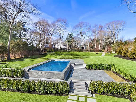 Beautifully sited on a hill overlooking an acre of meticulous grounds sits Cove Hollow Farm. A newly completed bucolic property, wonderfully situated equidistant from magnificent Atlantic Ocean beaches and the exclusive shops and restaurants of East Hampton Village. Sweeping through the automatic entry gates you are immediately impressed by the feeling of timeless style and elegance created by a very knowledgeable design team. Entering the lovely foyer the open plan allows views of the formal dining room, coffered living room with fireplace, elegant library and spacious, beautifully equipped kitchen leading to a charming solarium for informal dining. Also on the first floor is a lovely master bedroom suite, as well as amenities such as laundry, two powder rooms and service entrance. As you arrive at the second floor double doors welcome you to another gracious master suite with its wood burning fireplace and French doors overlooking the extensive grounds. The huge white marble bath boasts two vanities, soaking tub and roomy steam shower. Three additional large guest suites and another laundry complete the second floor. Continuing down to the fun lower level you find an expansive game space with wet bar, huge screening room, two more roomy bedrooms and bath, as well as extra rooms giving the option of wine cellar, yoga space and climate controlled storage. Stepping outside onto the spacious covered porch you have a wonderful view of the astonishing double infinity gunite and bluestone pool and its multi-level patios for sunning and entertaining. Beyond the pool complex the rolling lawn seems to go on and on, affording room for whatever sports you choose. As well as the spectacular pool, patios, outdoor shower and expansive yard, a barn style oversize two car garage gives plenty of room for road going and aquatic toys. Developed by Maidstone Home Corp.