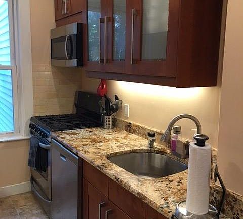 Fantastic apartment available in Newton September 1st! This beautifully renovated apartment features 2 large bedrooms, living room, dining room, and kitchen with cherry cabinets and exotic granite counter tops. Stainless steel appliances include gas range stove, microwave, refrigerator, dishwasher, disposal, and instant hot water dispenser. High ceilings, hardwood floors throughout, private entrance and bright with lots of natural sunlight. Huge shared large yard and private driveway that fits up to 3 cars. This perfect combination of suburban style and urban convenience is located on a quiet like Cul de sac street, minutes from the commuter rail, major highways Route 95, Mass Pike, Route 30, Route 16, fine shopping and downtown BOSTON! Don't miss your opportunity to steal a deal on this immaculate rental, in one of the top rated cities, in the Country! Newton has been voted A Best Place to Live for years in a row! Owner pays trash and sewer, tenant pays electricity, oil, and gas.
