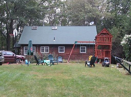 There's no need to travel miles up north for a secluded getaway...just travel up your 240 foot driveway to your secluded log home surrounded by woods. Enjoy a large open sunny back yard or the shade on your wrap around farmers porch overlooking the woods. Keep your house warm and cozy with the wood stove in the living room which is open to the upstairs loft, and heats the entire house. Eat-in kitchen and 2 bedrooms on the first floor. The second floor features a loft with an office and built in bookshelves, cathedral ceilings with wood beams and a 3rd bedroom. This rustic home is not visible from the road and it sits on 5 acres yet easy access to route 122.