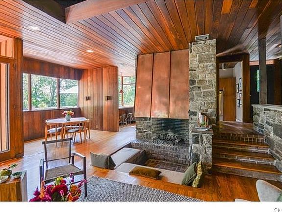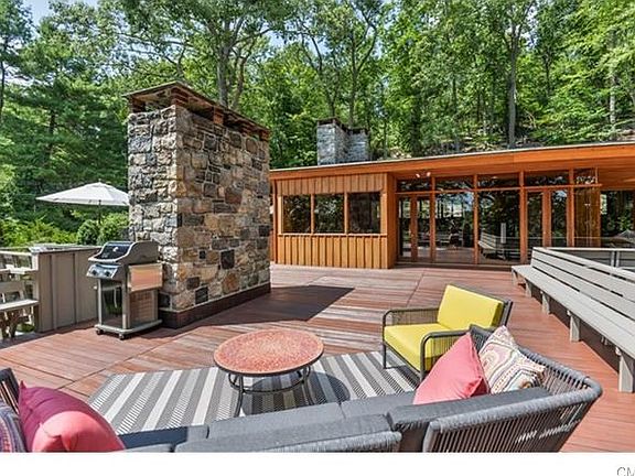 Stunning, Unique and Very Rare Opportunity. Mid-Century Modern designed as the Brandt House by Karl Holzinger in 1950, member of the studio of his famed uncle, the architect Edward Durell Stone, New York. Discover the vibrancy when you step in to this architectural gem and feel suddenly united with nature on a private hilltop setting nestled between multi-million dollar homes. An ideal home to gather with friends and family. Features extensive multi-level decks with 4 season expansive views, copper fireplace and conversation pit, open concept living areas, 2 master suites, sauna. Many recent updates to preserve its original charms. Wonderful family home or weekend retreat. In-law/Au Pair possibilities. Walk to reservoir and hiking trails.