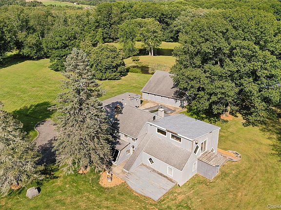Privately situated on 4 acres and at the end of a quiet cul-de-sac, find this custom contemporary. Complete with stocked pond, inground pool & massive three bay barn, this unique property will surely impress. Attractive floor plan features kitchen w/sunroom annex overlooking the expansive backyard. Living room w/fireplace flows seamlessly to secondary sunroom & family room w/bar. Huge first floor primary suite with walk-in closet, two additional closets and large ensuite bathroom. Second floor includes media room w/balcony, four additional bedrooms and full bathroom. Two car garage plus carport for abundant storage. Three bay barn with furnace is ideal for contractor, auto enthusiast, hobbyist or studio space. Quiet & private yet minutes to Village of Millbrook, Route 44, Route 55, Taconic State Park, dining, shopping and area attractions. Ideal as a primary residence or weekend retreat. Sold as-is. Cash or renovation loan only. Contact listing agent for details on alterations necessary to secure certificate of occupancy.