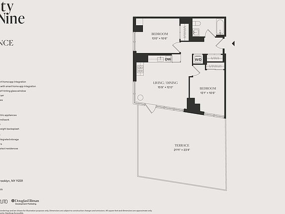 - Exterior features: , Bicycle storage, Broker Exclusive, Cold Storage, Concierge, Guarantors, Live In Super, Locker Cage, Media Room, Package Receiving, Public Outdoor Space, Roofdeck, Terrace