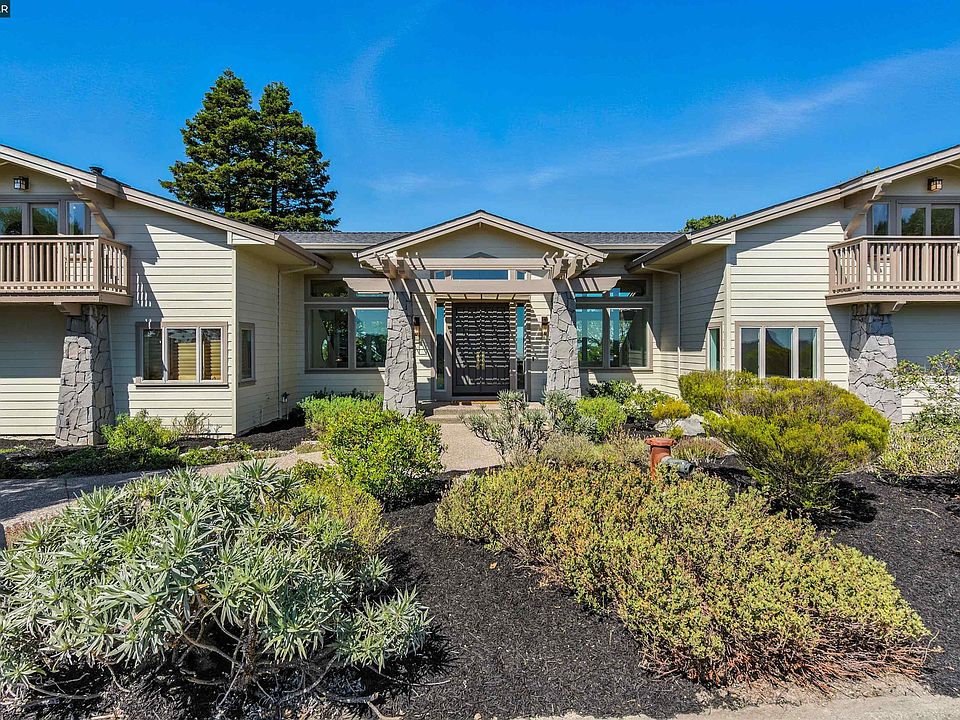 Architecturally significant home with sweeping hillside views from nearly every room. Expansive windows and thoughtful design create a seamless indoor-outdoor flow. The main level features four bedrooms, including one with an ensuite bath, and spacious living and dining areas that open to a covered patio. A manicured lawn offers room for play or pets, and a built-in firepit is perfect for gathering on cool evenings. Upstairs, the private primary suite feels like a retreat with spectacular vistas. An additional office and bonus room provide flexible space for work, hobbies, or a teen hangout. Multiple decks and patios invite al fresco dining, morning coffee, and breathtaking sunsets. Located along a popular walking trail, this home offers easy access to outdoor recreation. Enjoy a quiet setting just minutes from Orinda Village shops and restaurants, top-rated schools, and BART for a convenient San Francisco commute.