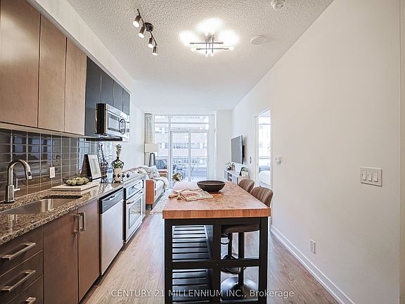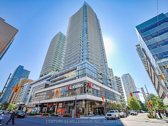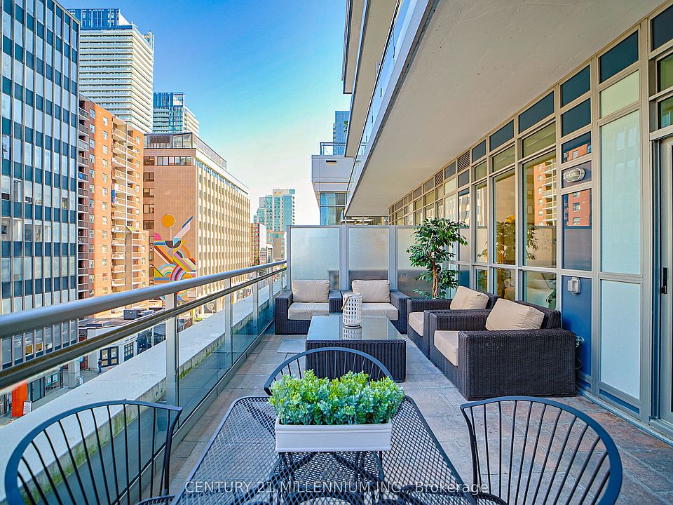 Rare 323 sq ft private terrace with natural gas BBQ hookup, water hose, and drain sets this freshly updated 2-bedroom, 2-bathroom condo apart at the Madison in Midtown Toronto. This bright, open-concept unit features brand new luxury vinyl flooring (late 2024), fresh paint throughout, updated light fixtures, floor-to-ceiling windows, and that spectacular terrace that truly extends your living space. The terrace is larger than most in the building and perfect for everything from morning coffee to evening entertaining. The spacious primary bedroom easily accommodates a king bed and includes an ensuite with a walk-in glass shower. The second full bathroom includes a tub. The flexible second bedroom features a premium built-in desk/Murphy bed unit (queen-sized), creating the perfect home office that converts seamlessly for guests. Stainless steel appliances complete the kitchen, and the convenient in-suite laundry with washer/dryer and storage make daily life effortless. Parking and locker included, plus the unique convenience of same-floor access to all building amenities. The Madison puts everything at your doorstep: Loblaws and LCBO in the building's base, steps to the subway and nearly-complete Crosstown LRT, and the shops, dining, and entertainment of Yonge & Eglinton. The pet-friendly building is Beanfield Fiber-ready for lightning-fast, affordable internet. Resort-style amenities include 24/7 concierge, fitness centre, yoga studio, indoor pool, hot tub, steam room, rooftop terrace with BBQs, theatre room, and more. Perfect for professionals who value walkability and connection, or anyone seeking convenience in Midtown's most dynamic neighbourhood.