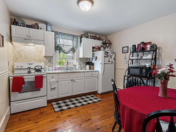 Antique charmCathedral-ceiling bedroomMetal roofingShared landscaped groundsRemodeled kitchenWood flooringFenced backyard