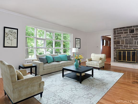 (Quick 22-minute commute to Grand Central Station!) This Bronxville P.O. mid-century home enjoys a park-like tranquil setting on a .57-acre lot and is a quick ten-minute stroll to Metro North Fleetwood Train Station. An easy living floor plan with open living room with fireplace to dining area, family room with fireplace with access to patio and gardens and dine-in kitchen and powder room completes the main the level. The second floors offers an expansive master bedroom with full bathroom, two bedroom and full bathroom. The lower level consists of recreation/bonus space perfect for work or play, laundry and access to the two-car garage. Additional storage and utilities are available in the basement. New high efficiency boiler, new heatpump and central cooling system installed in 2018.