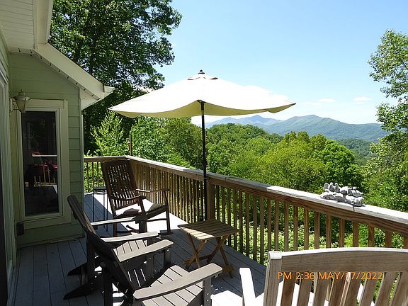 Home sits on 2.5 acres in a quiet, private, deed restricted neighborhood in Ratcliff Cove. Live in the cool mountain air at 3000' with wonderful views of the mountains and valley below. This fantastic location is just minutes to Lowes, grocery shopping, Historic Downtown Waynesville, and yet feels like living in the country. Close to Lake Junaluska, Maggie Valley, Blue Ridge Parkway, Great Smokey Mountain National Park, and 25 miles west of Ashville, NC. Come enjoy the many street festivals, art shows, great restaurants, and bluegrass concerts. In the cool fall morning with the windows open, you might hear a beautiful song from a Carolina Warbler. Price includes most furnishings. New high efficient heat pump installed August 2022. Shown by appointment only. Mr/Mrs. Bailey 828-564-3918
