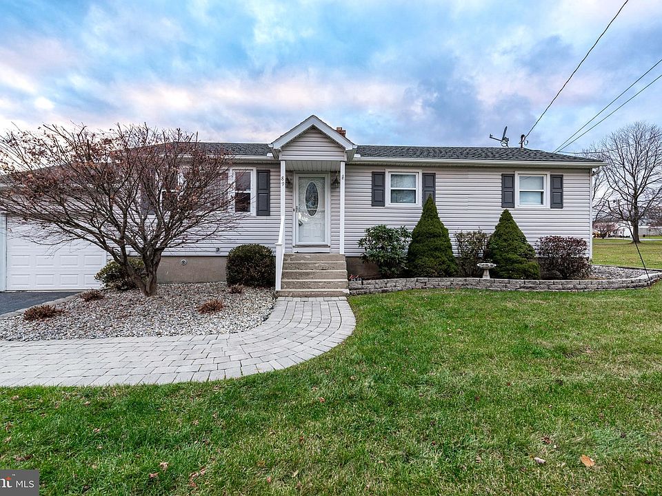 Welcome to your serene sanctuary nestled at the end of a peaceful cul-de-sac! This delightful single-story residence boasts 4 beds, 2 baths & an ambiance perfect for comfortable living. As you step inside, be greeted by an airy, open layout that effortlessly connects the family room & bright kitchen. The cozy living space invites relaxation, ideal for unwinding after a long day or hosting gatherings. The heart of the home lies in the well-appointed kitchen featuring modern appliances, ample counter space & a breakfast island—a hub for culinary adventures & creating memorable meals. spacious bedrooms offer gleaming hardwood floors & ceiling fans for additional comfort. Finished walkout basement offers versatile recreation spaces & 4th bedroom with double closets for family & friends. Step outside to discover your own backyard oasis—fully fenced & perfect for entertaining or simply soaking in the tranquility. Enjoy the serene atmosphere on the patio, ideal for alfresco dining or morning coffee while surrounded by panoramic views. This home is situated at the end of a coveted cul-de-sac location, ensuring peace & privacy. Conveniently located near major highway PA-33 for easy commute, Sawmill Golf Course, Nazareth Borough Park, Nazareth Middle & High Schools, it offers both tranquility & accessibility—a harmonious blend of comfort & convenience. Don't miss the opportunity to make this haven where comfort meets convenience your own.