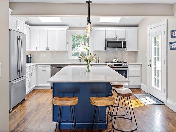 - Features: Skylight, Flooring - Hardwood, Countertops - Stone/Granite/Solid, Countertops - Upgraded, Kitchen Island, Cabinets - Upgraded, Exterior Access, Open Floorplan, Recessed Lighting, Remodeled, Stainless Steel Appliances, Wine Chiller, Gas Stove, Lighting - Pendant