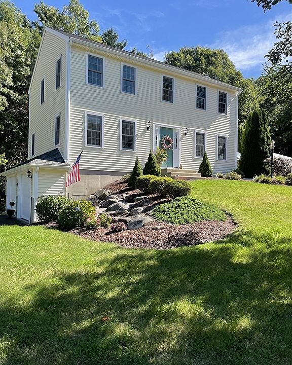 Custom built colonial located on beautiful 1-acre private lot features 3 bedrooms, 1.5 baths, 2 car garage under, large deck, central AC, finished family room in lower level, room for additional bath, lots of closet space throughout home, professionally landscaped grounds perfect for entertaining or relaxing, many upgrades, fenced in yard, move in condition located on private road enjoy surrounding trails, 2 driveways for lots of parking, quite residential setting you'll be close to it all just 4 min to MBTA Station