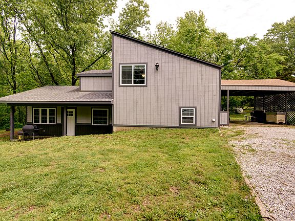 Bring the canoe! This charming two story bungalow located on over 2 1/2 acres, is just a short walk from the James River. Located less than 30 minutes from Springfield, makes this a perfect primary residence or a weekend getaway amidst the beautiful Ozarks vista! Featuring a lovely, newly added great room with cozy nooks and sliding barn doors - Warm and inviting kitchen and dining area - 2 large bedrooms (each with private bath) with vaulted wood ceilings and large closets - Office that could be converted to a 3rd bedroom - 3/4 inch solid oak flooring and ceramic tile -Trane, high efficiency, electric heat pump system with back up propane and central air with air purification system, new in 2021 - Hot water heater new in 2017 - New exterior siding - Attached carport - Detached 2.5 car garage/workshop with wood stove and outdoor sink - Hidden storm shelter - Adorable chicken coop - Little fish pond - 4' fence around entire property with drive-thru gate - Park-like setting. Call today to view this very special home.