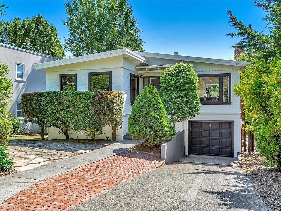 Nestled in the highly sought-after Sycamore Park, Mill Valley's premier neighborhood, sits this enchanting two-story, 3BR/2BA home on a spacious lot enveloped by mature trees. Recently refreshed with new interior and exterior paint, along with newly refinished hardwood floors plus newly installed kitchen flooring, this residence exudes charm. The expansive living and dining area boasts a vaulted open wood beam ceiling, seamlessly connecting to a sizable rear deck offering views of majestic Mount Tam and overlooking the expansive rear yard. The updated kitchen features new appliances and a breakfast area, while a full bath and spacious bedroom complete the upper level. Interior stairs leads to two additional bedrooms and another full bath on the lower floor. With its versatile layout, this home accommodates various lifestyles, whether for remote work or Airbnb ventures. Enjoy the convenience of a large one-car garage plus driveway parking. Experience effortless living in an unbeatable location, mere minutes from Downtown Mill Valley, top-rated schools, shops, restaurants, and parks. With parks, schools, cafes, and even an ice cream shop within easy reach, this home epitomizes convenience and comfort.