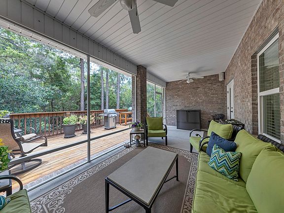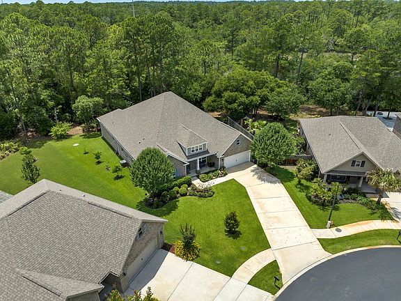Experience the magic of life on the coast in this stunning and spacious home that is minutes from the sugar sands of 30A and full of upgrades! Situated on a 0.55 prime corner lot in the popular Peach Creek subdivision, this 3,096 sq ft Brianne open floor plan features 5 bedrooms, 3 baths, a large office, formal dining room, and a 720 sq ft garage that fits 3-4 vehicles! This charming neighborhood is conveniently located near beaches, schools, restaurants, boutique shopping, golf, beach clubs, and is a 5-mile drive to iconic Seaside! The residents of Peach Creek are known for spreading holiday cheer and food trucks often visit this friendly neighborhood. Head to the beach, bike/walk the neighborhood, or enjoy forest views on the huge screened-in back porch, deck, or backyard. This one-owner home has been impeccably maintained and has beautiful landscaping, including a variety of flowers and fruit trees (Nagami Kumquat, Blood Orange, Naval Orange, Meyer Lemon). The gourmet kitchen features an extra-large island for additional seating and storage, granite countertops, beautiful cabinetry, pendant lighting, travertine marble backsplash, glass cooktop, built-in wall oven and microwave, and designer vent hood. The breakfast area is perfect for casual meals! The spacious master suite is separated from the other bedrooms, has its own access to the screened-in porch, and has an en suite with soaking tub, tiled shower, double vanity, and huge walk-in closet. This well-designed layout has two guest bedrooms and a full bathroom located next to the office, and two additional guest bedrooms with a full bathroom off the breakfast area. There are 3 hallway closets-more storage than you will ever need! Additional features include wood laminate flooring in main living areas, ceramic tile flooring in bathrooms and laundry, crown molding, tray ceilings, huge walk-in pantry, dedicated laundry room, french doors, smart ceiling fan outlets, Simplisafe home security system, Nest thermostat, Armor hurricane screens for all windows, doors, and screened-in porch, and Reme Halo whole-house in duct air purifier. There are 2" white blinds and ceiling fans throughout the house. Outdoors you can have your own Florida oasis! Listen to music with the Wired Definitive Technology speakers on the screened-in porch or grill out on the large deck. The backyard backs up to nature and has room to play! Enjoy the convenience of a fully irrigated yard with well and Rid-O-Rust mitigation system, gutters/downspouts around entire roof, Ring video doorbell, upgraded front porch lights and garage coach lights, Taexx in-wall pest control system, monitored Sentricon termite stations around the perimeter of home, and 2 hose bibs with separate hose bib extension to the front side of the house. The massive garage has shelving, bike hooks, attic pull-down stairs, dedicated freezer/refrigerator outlet, and a Generac generator transfer switch for peace of mind! Schedule a showing today!