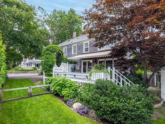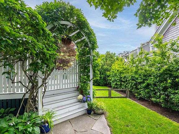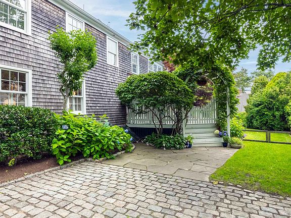 Gorgeous waterview home tucked into a corner of Vineyard Haven village. This property is a landmark thanks to the stunning flowerbeds visible to passersby. The quaint exterior disguises what greets the visitor upon entering - a sophisticated combination of traditional and modern design within a completely renovated home. Consider the fact that the house has four large bedrooms all with modern ensuite bathrooms PLUS an office PLUS a separate den PLUS an extra full bathroom. The primary bedroom with private deck occupies the entire third level of the home and enjoys sweeping harbor views. This is a home for entertaining friends and family thanks to its open floor plan that opens onto a large deck. The home is located at the far end of Main Street in what is a bustling part of the village, and yet when one steps inside, the hubbub disappears as the door closes behind you. The cobbled driveway fits two cars. The 2-car garage is currently configured to accommodate an art studio but could easily be repurposed. Tucked between the house and garage is a peaceful area with an outdoor shower - the perfect place to rinse off after a day at the beach or out kayaking or paddleboarding.