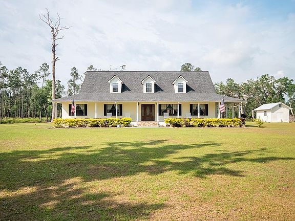 Enjoy the peace and privacy of country living at its best in this expansive 3,476 sq ft home set on 2 beautifully maintained acres. Located just a short 25 minute drive from Valdosta, this property features generously sized living areas and wraparound porches on three sides. Inside the home offers a large and comfortable layout, including a spacious 17x25 primary suite on the main floor—an ideal retreat with plenty of room for a sitting area, office nook, or additional furniture. Upstairs, you'll find two bedrooms on each end of the hallway, along with a large bonus room that also functions as an additional bedroom, offering flexible space for guests, a home office, playroom, or game room. The home includes plenty of extra closets and storage throughout, making it easy to stay organized. As if this home couldn't get any sweeter, how about a piece of mind with purchase of a newer roof and two HVAC units, both installed just five years ago. French doors at the rear of the home offer a charming entrance and abundant natural light. A two-vehicle carport includes two attached storage rooms for added convenience. Out back, you'll find a raised 10x10 clubhouse and a spacious 16x32 storage shed with endless potential—use it as a workshop, home gym, hobby space, or even convert it into a guest suite. A 28x45 concrete slab offers additional possibilities such as extra parking for RVs or boats, a sports court, outdoor entertaining space. Security lighting surrounds the entire property, offering both enhanced safety and warm evening ambiance—illuminating the landscape beautifully while creating a welcoming glow after sunset. While a small pond adjacent to the property IS NOT included in the sale, it offers a scenic view from the front porch—perfect for morning coffee or evening relaxation. Deer frequently come to feed in the evenings, adding to the peaceful, nature-filled setting. This beautiful, one-of-a-kind home will not last long!! Schedule your private tour TODAY!
