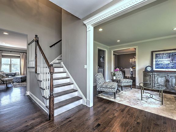 Welcome to Great River! This stunning Edgewood model is loaded with upgrades and designed for comfort, style, and functionality. A grand two-story foyer and 9-foot ceilings on the main level set the tone, complemented by gleaming hardwood floors and elegant crown molding throughout. The home boasts generously sized rooms including a primary suite with bath, private sitting room, and its own balcony. The finished walk-out lower level offers incredible versatility with a gym, additional bedrooms and bathroom, spacious living area, and potential for an in-law suite. Updated mechanicals, an expansive deck for entertaining, and even your own outdoor basketball court. With space for everyone and every lifestyle, this home is truly a must-see.